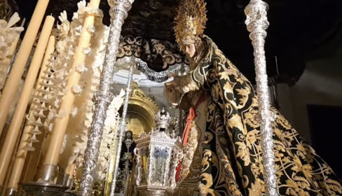En una de las últimas chicotás, el capataz Tomás Sampalo se ha dirigido, visiblemente emocionado, a su cuadrilla: "Escucharme ahí abajo. La Esperanza está mirando a la calle. Hubo una persona que está en el cielo que soñó con todo lo que va a pasar el sábado. Venía de vuelta todas las mañanas acompañando a la Virgen", ha comentado.