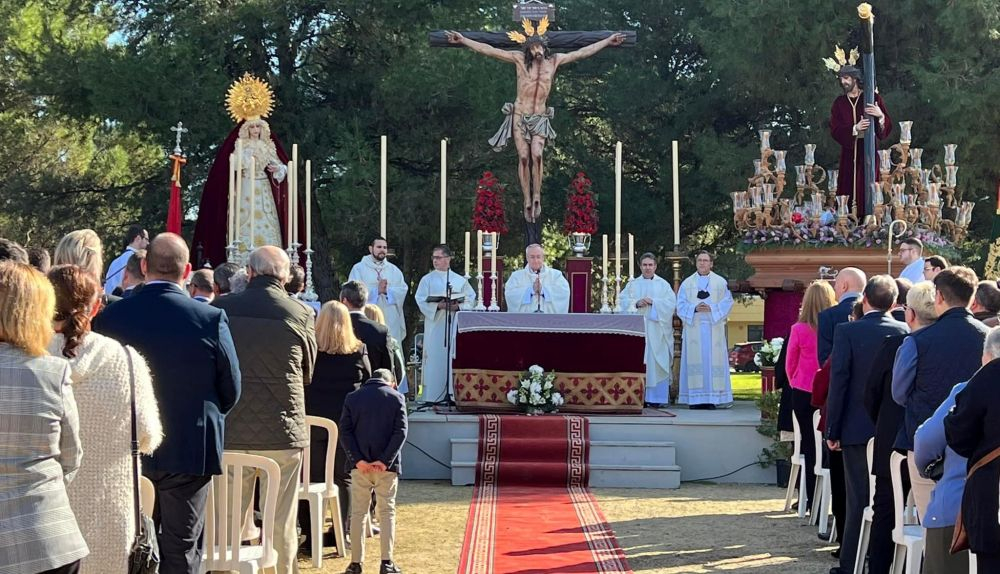 Este fin de semana han celebrado la efemérides por todo lo alto, como misa de campaña en Puertas del Sur, con los titulares presentes tras sendos traslados hasta el lugar donde se instaló el altar y un 'retablo' con los titulares; con centenares de hermanos, la presencia del obispo y sin que faltara la asistencia de la alcaldesa, delegados y la plana mayor del PP de Jerez.