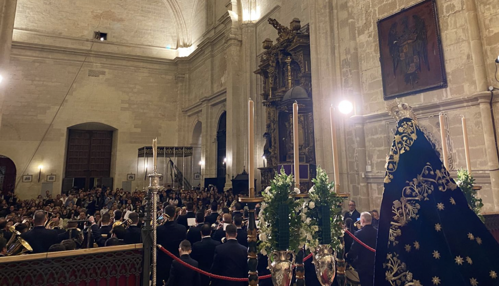 El histórico templo se llenó en una cita en la que la formación musical dio muestras de su calidad y del buen momento por el que atraviesa. El ex pregonero de la Semana Santa, Enrique Victor de Mora, se ocupó de presentar el acto e introducir la nueva marcha.