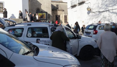 Este año, la hermandad en colaboración con tele-taxi y Policía Local, han puesto en marcha una iniciativa por la que durante la tarde de este viernes, personas mayores de las distintas residencias y geriátricos de Jerez, han sido recogidas por voluntarios de tele-taxi.