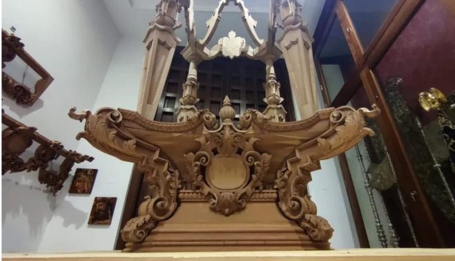 Para este 2023, los avances comprenden la estructura tallada del templete. La empresa que tiene por delante la hermandad es ardua dado que han optado por un paso muy trabajado en el que las principales artes cofrades formarán parte del conjunto: talla, dorado, orfebrería y bordado en los faldones.