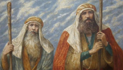 Según el libro del Éxodo, Aarón acompañó a Moisés en la liberación del pueblo hebreo de Egipto y fue una figura clave durante el éxodo hacia la Tierra Prometida. Dios le confió el sacerdocio hereditario, haciendo de su linaje el núcleo de los sacerdotes levitas. A pesar de sus errores —como su implicación en la creación del becerro de oro durante la ausencia de Moisés en el Sinaí—, fue perdonado y confirmado en su misión sagrada.