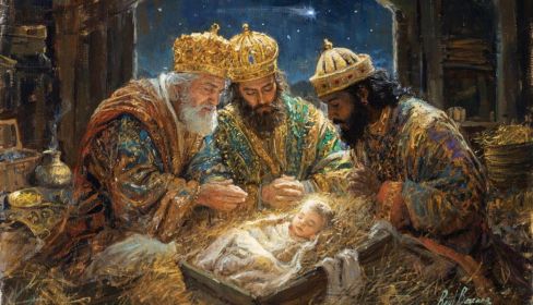 Según la tradición, guiados por una estrella, emprendieron un largo viaje movidos por el deseo de encontrar la verdad. Su gesto de adoración y la ofrenda de oro, incienso y mirra expresan el reconocimiento de Jesús como rey, Dios y hombre destinado al sufrimiento. En el relato evangélico, los Magos no solo contemplan al Niño, sino que lo encuentran junto a María, subrayando una vez más el papel central de la familia en el misterio de la Encarnación.