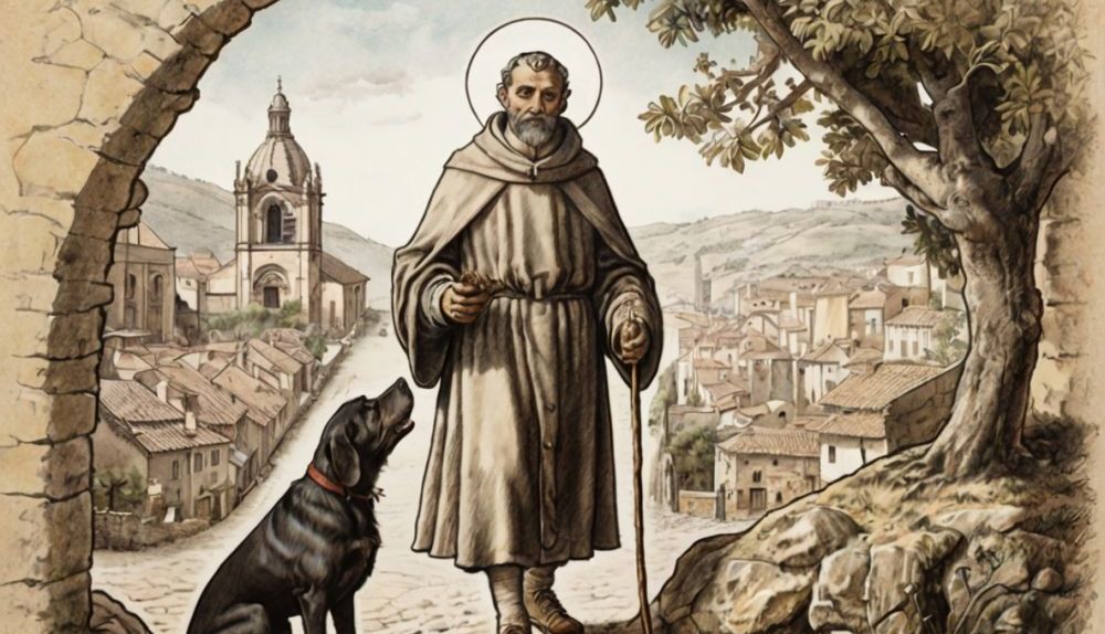 En su propia carne conoció el sufrimiento de la peste y se retiró a las afueras de la ciudad, donde, según la tradición, fue socorrido por un perro que cada día le llevaba un pedazo de pan. Esta imagen —el peregrino con una herida en el muslo y acompañado de un perro— se ha convertido en uno de los símbolos más característicos de su iconografía.
