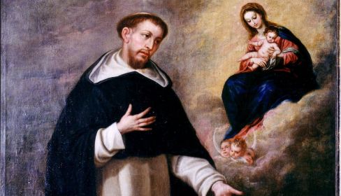 Nacido en Caleruega (Castilla, España), alrededor del año 1170, Domingo de Guzmán fue canónigo de la catedral de Osma y más tarde sacerdote misionero en el sur de Francia, donde combatió con sabiduría y caridad la herejía albigense. Observando que muchos predicadores carecían de formación y vida evangélica, comprendió la necesidad de una nueva forma de vida religiosa: una orden que combinara la oración contemplativa con la predicación activa.