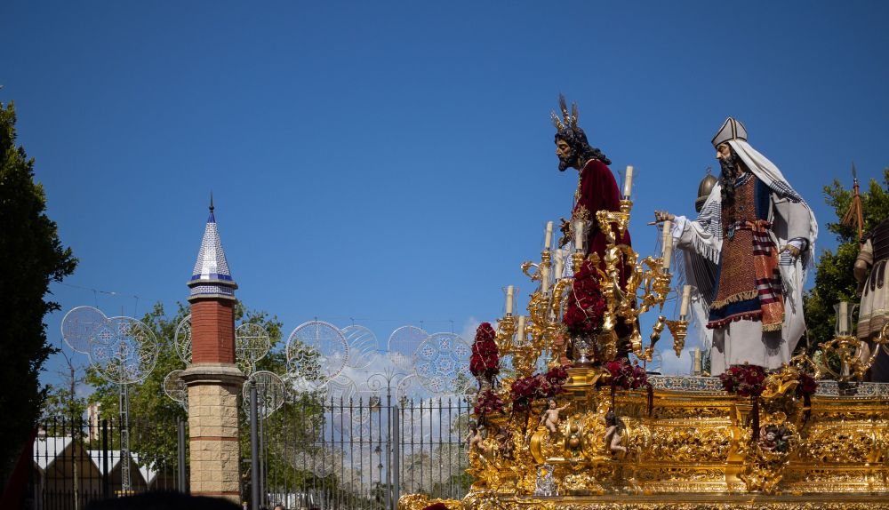 El Señor de Santiago, El Prendimiento, enmarcado en la puerta de salida a punto de asomarse al Angostillo.