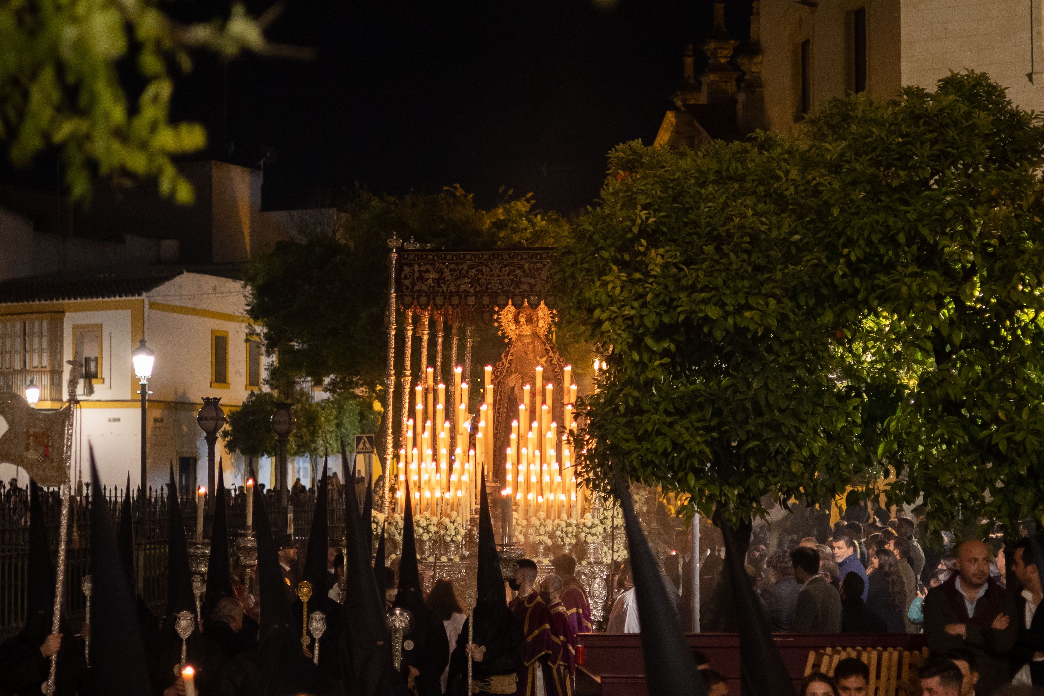 Las que nunca han sido tan populares, lo tienen aún más duro. Si a esto se le suma estar en una jornada difícil como es la Madrugá y ser una hermandad de silencio, el asunto se pone francamente complicado. Y si a todo esto añadimos que se trata de una dolorosa bajo palio, ya tenemos una ecuación desastrosa. Ya sabemos aquello de "Sevilla es mariana y Jerez cristífera". Aquí, salvo excepciones, los palios andan solos y se nota que ni bandas ni cuadrillas se miman igual que los misterios. Para muchas, es un alivio que los palios sigan siendo el "pequeño secreto" de la Semana Santa, como esa playa paradisíaca y perdida que aun la gente no se ha animado a descubrir.