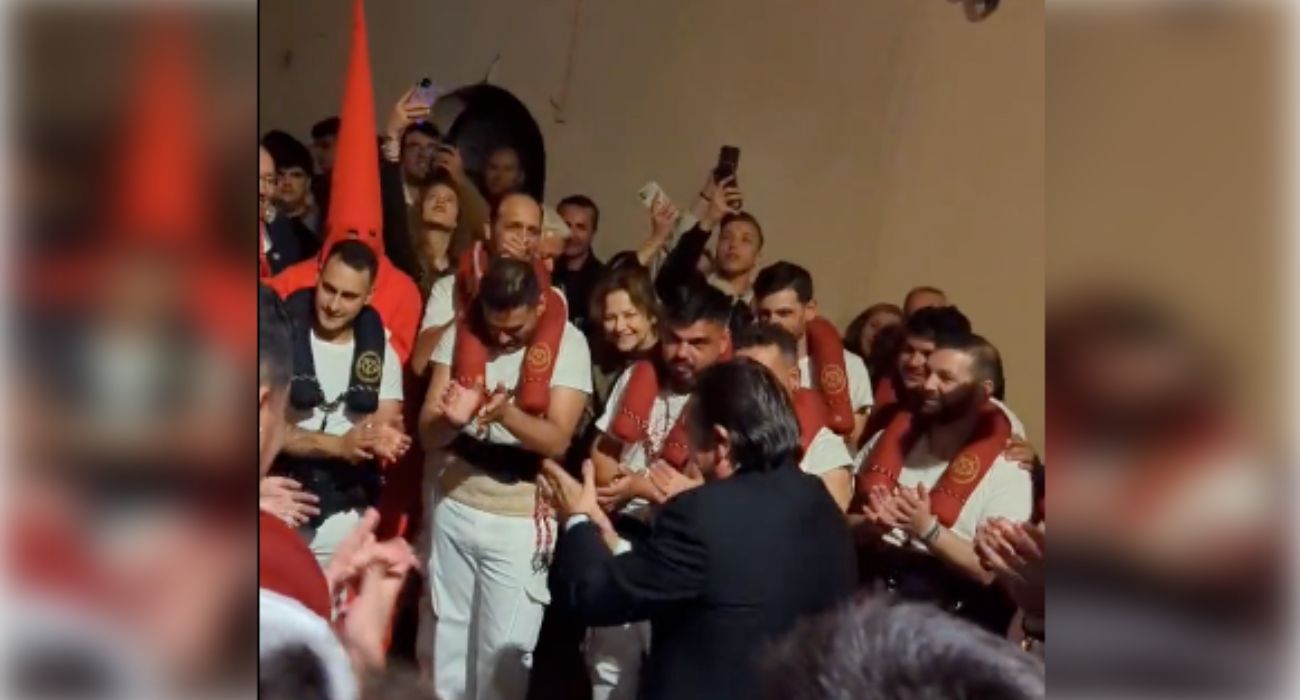 Miércoles Santo en Lebrija: la llegada de los Gitanos a la capilla de Belén subiendo la calle Almenas te deja momentos así, con la cuadrilla fuera y el capataz (y hermano mayor), José Vargas, arrancándose. pic.twitter.com/ZtygXDGhKB