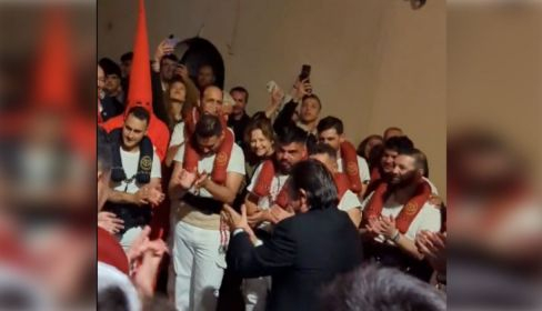 El capataz y hermano mayor, José Vargas, se ha arrancado por bulerías mientras que su cuadrilla le acompañaba con el cante y las palmas.