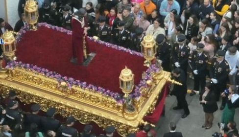 Un dron no autorizado fue detectado sobrevolando a baja altura durante la salida del paso del paso del Cristo de Medinaceli en la capilla de San Isidro, en Algeciras, donde había cientos de personas.