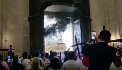 El olivo que cada Miércoles Santo acompaña al paso de misterio se ha roto por completo ante el estupor de los presentes en el interior de la iglesia.