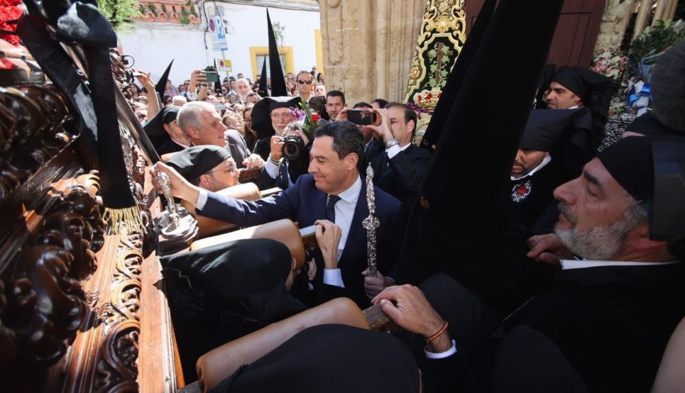 La visita este Viernes Santo del presidente de la Junta de Andalucía, Juanma Moreno, culmina la que dos de sus consejeros del Gobierno andaluz han llevado a cabo días atrás a Jerez, Antonio Sanz el pasado Lunes Santo, y Arturo Bernal, el pasado Miércoles Santo. Como en las anteriores ocasiones, el presidente ha llegado de la mano del PP local y de la candidata María José García-Pelayo.