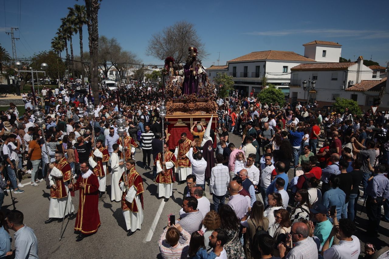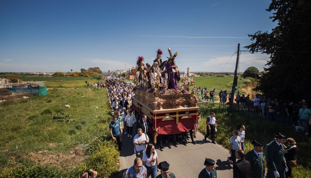La hermandad inició su largo camino poco después del mediodía para cumplir por segundo año un reto por el que pocos apostaban hasta no hace mucho: recorrer casi 14 kilómetros y estar también 14 horas en las calles. La recompensa al esfuerzo la encontraron en el amparo que el público le dio a la cofradía. Los momentos más sobresalientes se disfrutaron con la llegada de La Entrega a los alrededores de la Iglesia de San Marcos donde este año hizo la estación de penitencia e iniciar el regreso a Guadalcacín.