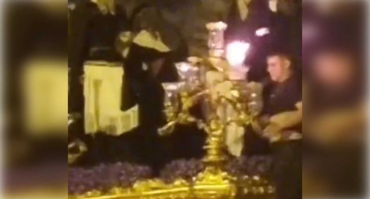 Un costalero subió a una escalera para tratar de apagar la vela, pero empezó a soplar y el fuego se avivó un poco más.