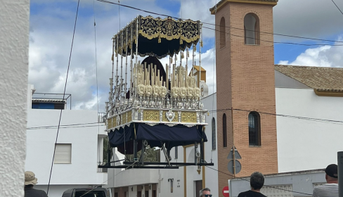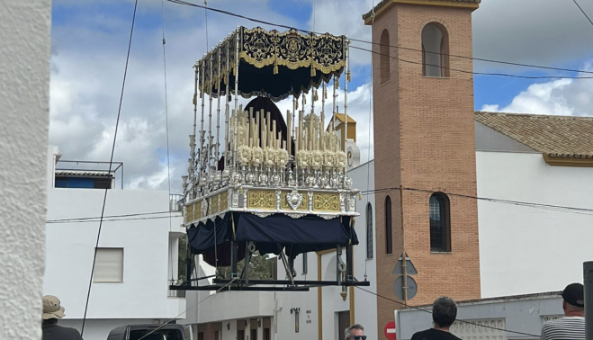 Muchos vecinos de Morón de la Frontera se han encontrado con una imagen de lo más curiosa en las calles de la localidad sevillana cuando han visto por los aires a un paso de palio y a nazarenos.