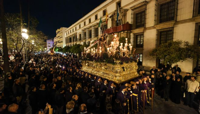 Además, el Santo Crucifijo está a punto de iniciar la celebración de su fusión con la Sacramental de San Miguel, que cumple 500 años. La del ‘Silencio Blanco’, como es conocida la de Las Cinco Llagas, vuelve a ser la única con costaleros asalariados en su palio.