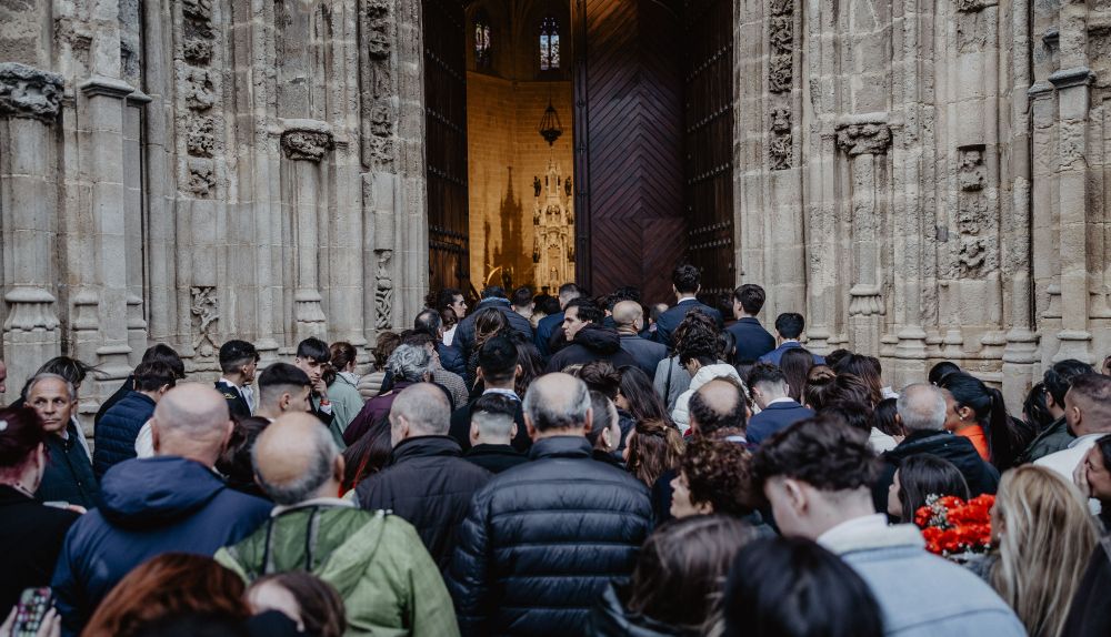Con colas en la puerta para acceder al templo, el reguero de saetas fue continuo. Muchos fueron los momentos emotivos que se vivieron delante de los pasos, como el de una mujer mayor que se puso a llorar desconsolada.