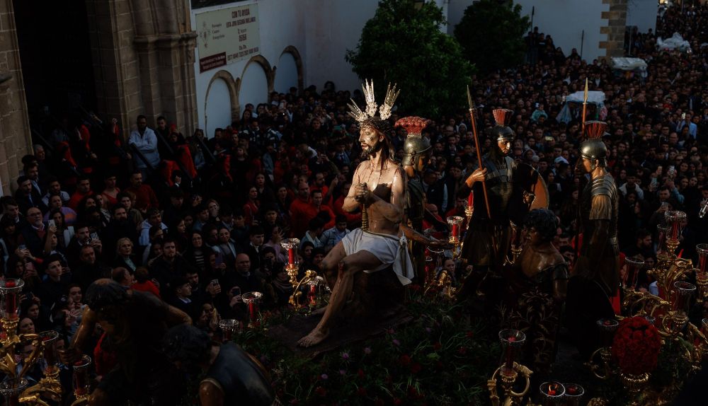 La Hermandad de los Judíos es una de las más señeras de la ciudad de Jerez. Fundada en 1712, es también la hermandad con mayor número de hermanos, algo que se pasa de generación en generación, de maridos a mujeres, de padres a hijas, de abuelos a nietos. Se trata de una tradición que siguen y perpetúan muchas familias de la ciudad, que pertenecen a esta agrupación. En ella se da una curiosa mezcla entre familias pudientes de Jerez y familias pertenecientes a la clase media y obrera. Eso puede notarse en esta tarde de martes, en las vestimentas y en las conversaciones que rondan la plaza. Nadie, por cierto, quiere mirar demasiado al cielo —luego vendrían los contratiempos, los refugios y la fallida estación de penitencia—.