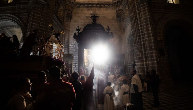 Aunque esta Semana Santa han sido pocas las hermandades que han podido llegar a la Catedral de Jerez para completar sus estaciones de penitencia, a las que han pasado por el templo catedralicio les ha sorprendido las voces que rezan las oraciones.