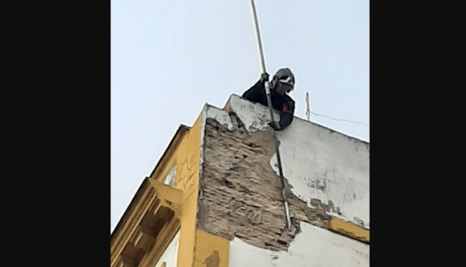Por ello, los bomberos han actuado preventivamente retirando restos de esta fachada, subiendo al edificio en cuestión.