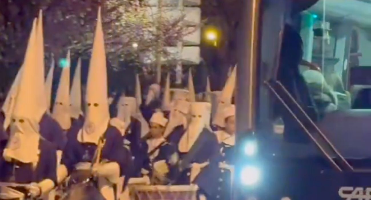 En Zaragoza, como ha comentado Rafa Maza de forma irónica en redes, viven su particular Tranvía Crucis. En el vídeo que ha compartido se puede ver cómo el tranvía pasa justo pegado a la banda de música, que en esta Semana Santa está formada por los propios nazarenos.