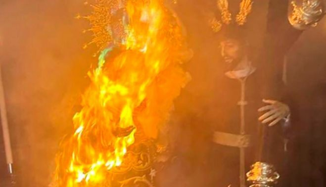 Este Viernes de Dolores quedará marcado siempre en negro en la historia cofrade Chiclana tras salir ardiendo el manto de la Virgen de los Desconsuelos. Como consecuencia del fuego, la imagen de la hermandad de los Afligidos ha sufrido daños considerables.
