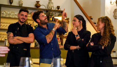 Lo de La Cochera del Abuelo vino después, cuando en 2018 Cinta ya lo había tomado bajo su protección (“ella es mi consejera, no solo en la cocina, sino en la vida”, sostiene él) y se inventó uno de sus eventos exclusivos que ella misma bautizó como “novillada gastronómica”. Invitó a la cochera, el local que hoy es el restaurante y en el que ella ya había organizado actos sociales de todo tipo, a los responsables de los 13 mejores locales gastronómicos de la ciudad para que probaran, a ciegas, las maravillas de Bosco. “Vinieron los de Ovejas Negras, los de Cañabota… y todos decían que la de la cocina era una mujer”, ríe ahora Bosco al recordarlo. Porque aquella cita a ciegas con sus creaciones debió de ser una experiencia inolvidable a ambos lados del experimento.
