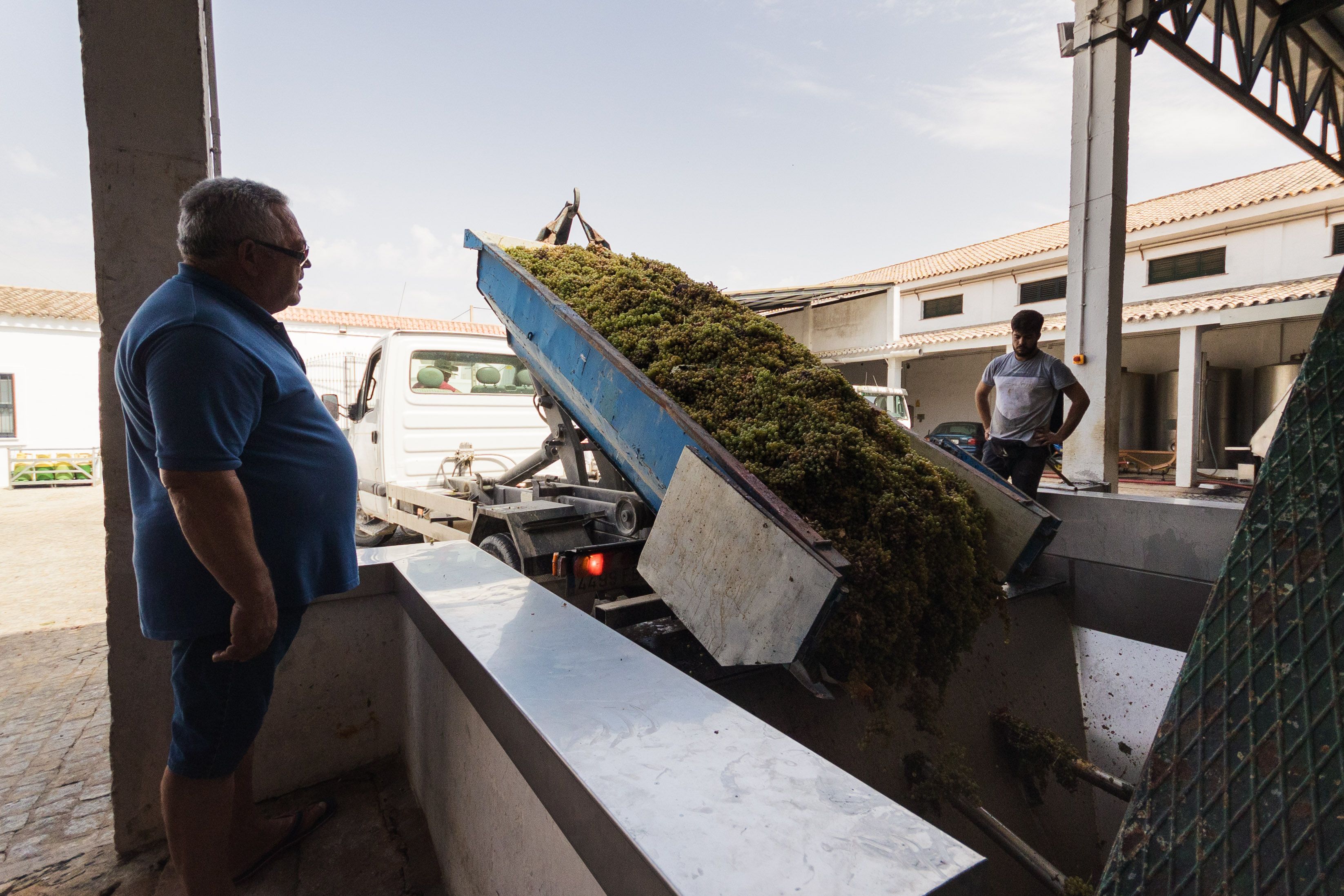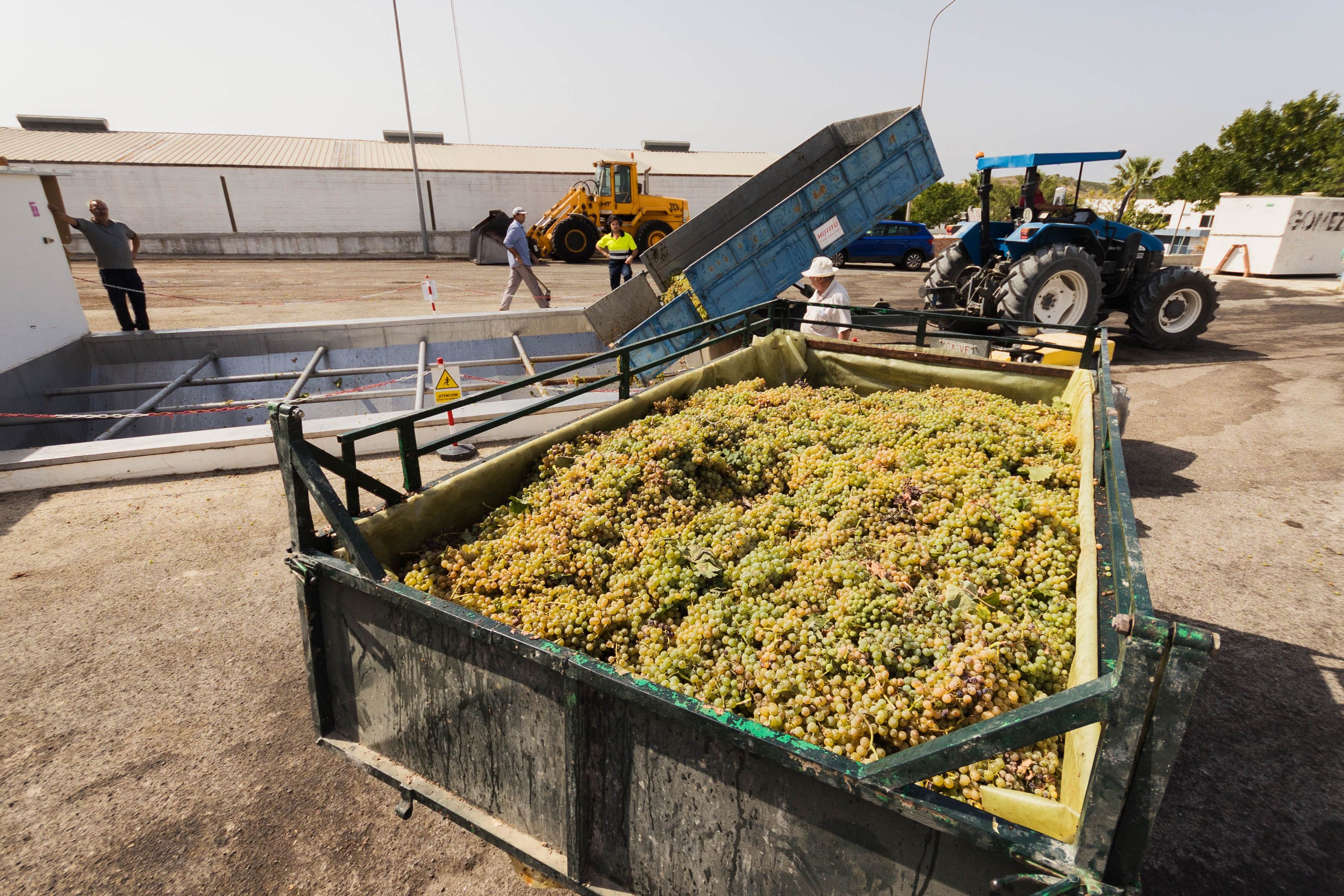 Uvas recién recolectadas en la pasada vendimia en Trebujena, nueva zona de crianza del jerez.