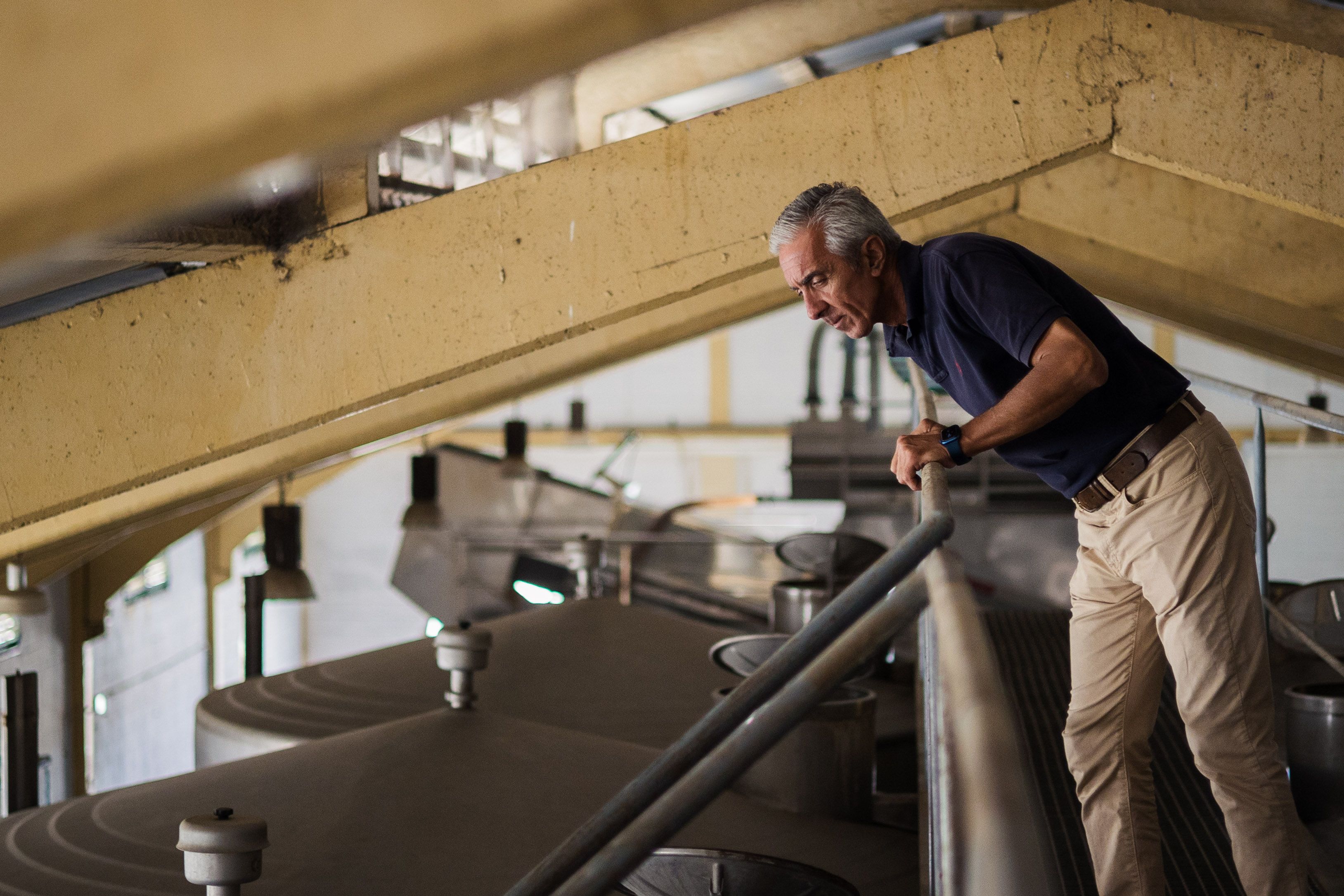 Un trabajador, durante la vendimia en una viña del Marco de Jerez.