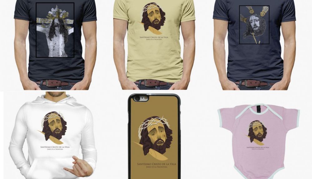latostadora.com es una de las principales webs de venta de camisetas, sudaderas y demás merchandising, en la que predominan diseños divertidos y originales, muchos de ellos de personajes de ficción televisivos y cinematográficos. Pero como se aprecia en la imagen, los diseñadores 'Pellizquito' y 'La pregonera', han creado camisetas, sudaderas, bodies de bebés y hasta lienzos y fundas para móviles con los rostros de algunas de las devociones, tanto marianas como cristíferas, más importantes de Andalucía, entre las que se encuentran las imágenes del Señor del Prendimiento, el Cristo de la Expiración y el Cristo de la Viga, de Jerez. En este sentido, llama la atención, tratándose de imágenes religiosas, la pose del modelo que viste las sudaderas, con una mano haciendo cuernos al más puro estilo heavy.