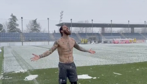 Fuerte nevada en Madrid y temperaturas, como en muchos otros puntos de España, bajo cero, y el central del Real Madrid, el camero Sergio Ramos, no ha tenido nada mejor que hacer que subir un vídeo a las redes sociales tras el entrenamiento desafiando a las terribles condiciones meteorológicas. "I love summer (amo el verano)", ha escrito el sevillano con un 'profundo' sentido de la ironía y la paradoja, ya que en el vídeo aparece sacando la lengua y sin camiseta.