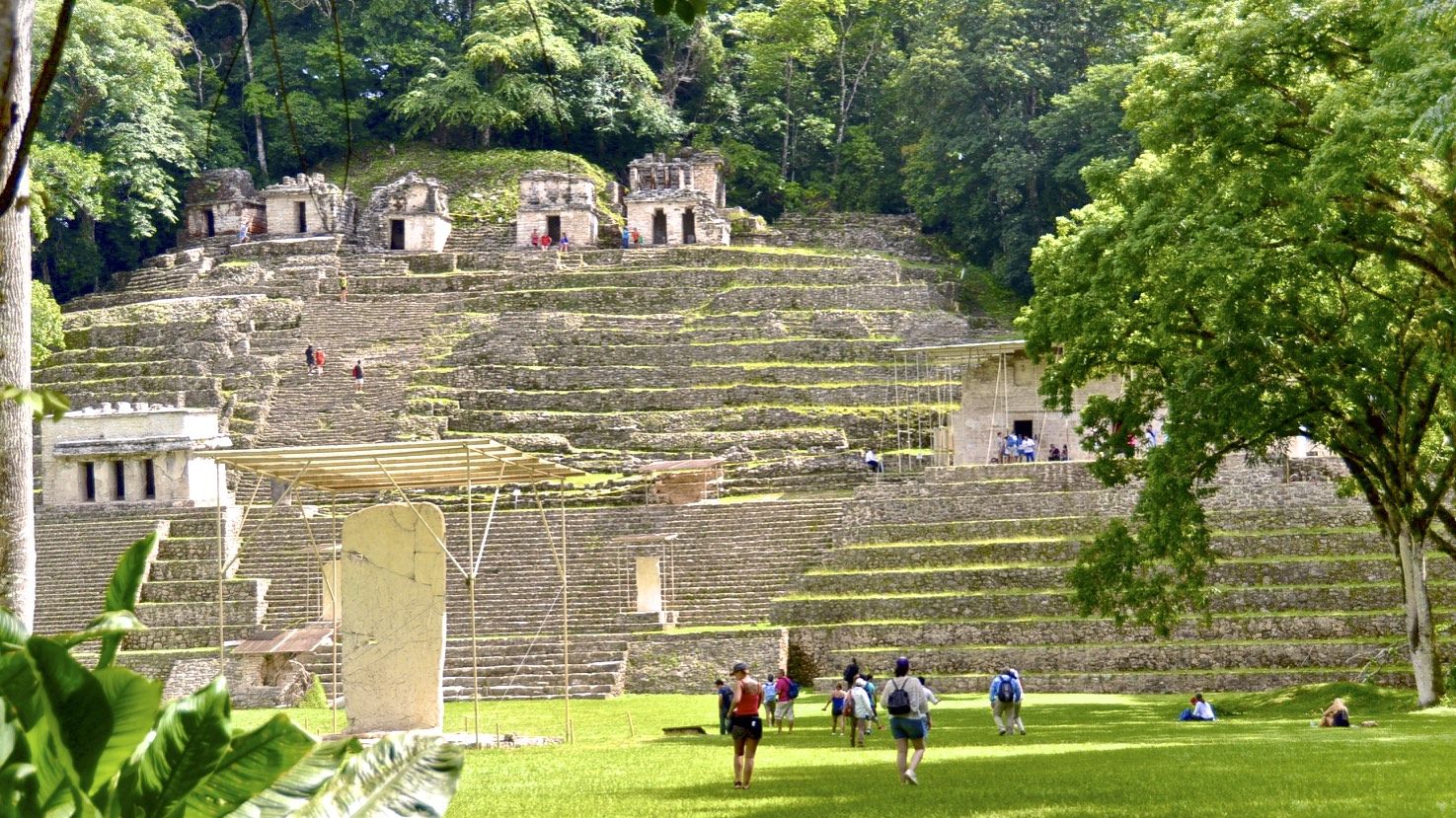 Bonampak es de lo que llaman una ciudad de cuarta categoría, es decir que no se puede considerar un gran asentamiento, pero debe su fama a los murales conservados en tres cuartos, completamente pintados. La construcción de la estructura del sitio data del Periodo Clásico Tardío. (580 a 800 d. C.). Además de estar entre los murales mayas mejor conservados, son dignos de mención por derrumbar la temprana suposición de que los mayas eran una cultura pacífica (una larga posición argumentada por el arqueólogo del Instituto Carnegie de Washington, Sir John Eric Sidney Thompson), mostrando los murales claramente el oficio de la guerra y el sacrificio humano. Se suele decir que la zona arqueológica fue descubierta por Giles Healey y Mateo Bolívar, entre Abril y Mayo de 1946, quienes fueron informados por los indígenas lacandones, llegando varias veces a la zona, cuando se dirigían a realizar cultos en los edificios de la ciudad. Sin embargo, como en muchos otros casos, los indígenas ya conocían la localización del sitio, y el hallazgo se atribuye hoy a dos de ellos: José Pepe Chambor y Acasio Chan. (Wikipedia)