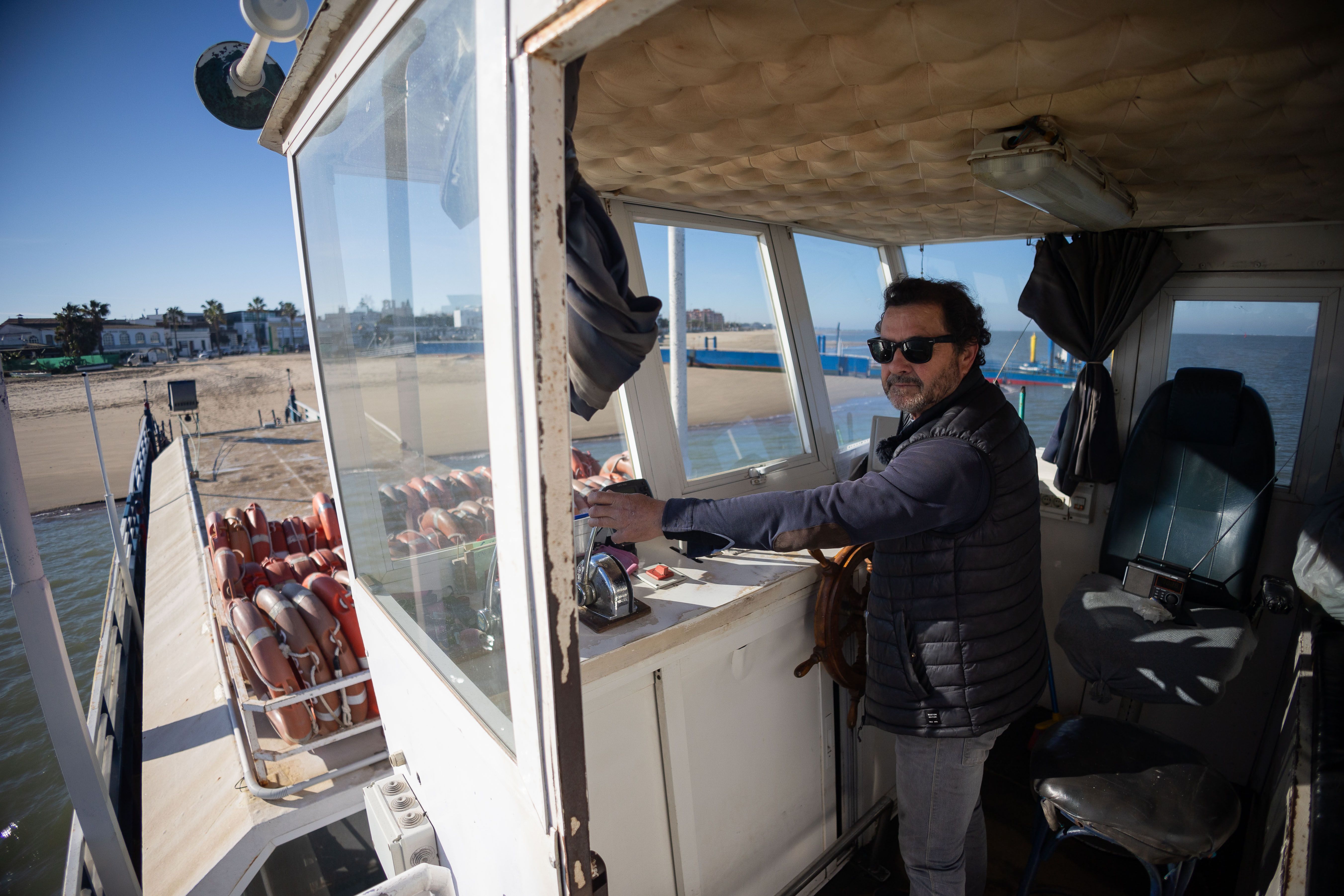 El sanluqueño sube las escaleras de La Olga, dedicada exclusivamente al trasporte de una orilla a otra. Según comparte con lavozdelsur.es, a ella suben los coquineros, las cuadrillas de trabajadores de Doñana, los visitantes que quieren pasar un día de playa y también rostros conocidos. “Somos los barqueros presidenciales, trasladamos a todos los presidentes del gobierno que vienen a disfrutar de sus vacaciones a los palacios. Empezamos con Felipe González y, todos los demás. Lo mismo viene un coquinero que un consejero”, expresa.