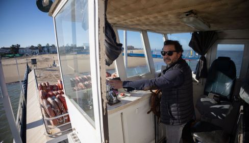 Cruzar el río es, para él, una forma de vida y una tradición familiar que continúa desde hace más de medio siglo. Arranca motores y rumbo a Doñana.