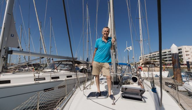 Desde el barco de 13 metros de eslora, agarrado al timón, revive en su memoria la “aventura” que inició en 1994, cuando lo compró de segunda mano en El Masnou, Barcelona. Su idea era navegar hasta El Caribe con tres amigos y pasar allí una temporada. Pero la locura llegó a más. “Solía navegar en un barquito por la Bahía, pero no tenía experiencia en la navegación de altura. Tuve esa inquietud, surgió el momento adecuado para poderlo hacer y lo aproveché”, comenta.