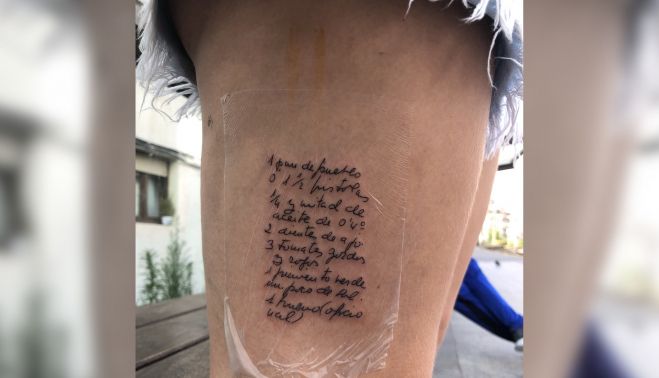 Quizás por ello, para no olvidar cómo, una joven ha decidido tatuarse en una pierna la receta de salmorejo de su abuela, con la misma letra de la propia mujer.