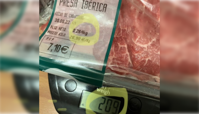 El usuario subió una foto pesando los filetes envasados y escribió una queja a Mercadona a través de su red social. “La carne que he comprado pesa 1/5 menos de lo que pone. Lo mismo hay una explicación que se me escapa. O lo mismo voy a tener que ir con báscula a hacer la compra”, apuntaba.