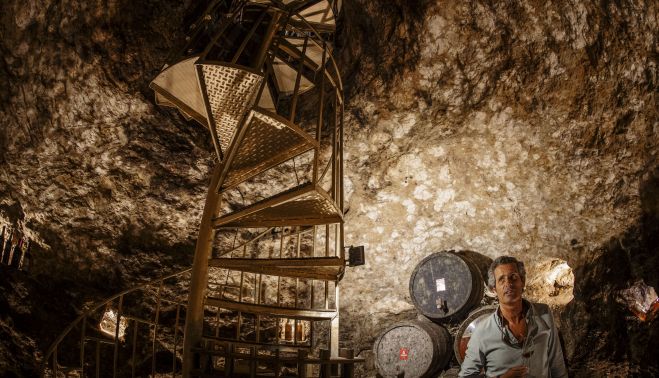 La casa estuvo habitada por dos generaciones durante cien años y luego entró en barrena. José María y su familia no solo la rehabilitaron y recuperaron conservando la esencia, sino que, además, hallaron una enigmática cueva que han convertido en bodega y en la que pretende incluso ofrecer cenas exclusivas. “Es la joya de la casa, los antiguos dueños no sabían ni que esto existía”, afirma. Y es que bajar por su escalera de caracol es bajar seis metros de subsuelo y remontarse “400 o 500 años: esto pudo ser desde una fresquera, una cloaca o hasta un pozo donde se protegían para las batallas, como un búnker”.