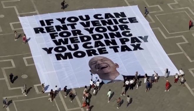La celebración ha generado protestas locales en la ciudad italiana, especialmente por el impacto turístico y logístico que supone un evento de esta magnitud en plena temporada alta. El movimiento “No hay espacio para Bezos” se ha movilizado en contra de la boda, señalando el colapso que ya sufre Venecia cada verano.