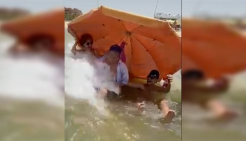 Los abuelos se fueron al agua y sus nietos, que se encontraban junto a ellos, acudieron al rescate entre risas y bromas por el chapuzón imprevisto.