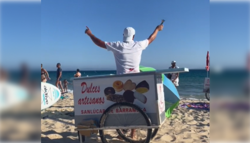 Tras su cántico donde leen casi la carta de dulces entera que tiene su carrito, el público de la playa los aplaude por el increíble show que han ofrecido. “Los vellos en pie me habéis puesto”, dice uno de los vendedores. El vídeo ya tiene casi 12.000 visitas y subiendo.