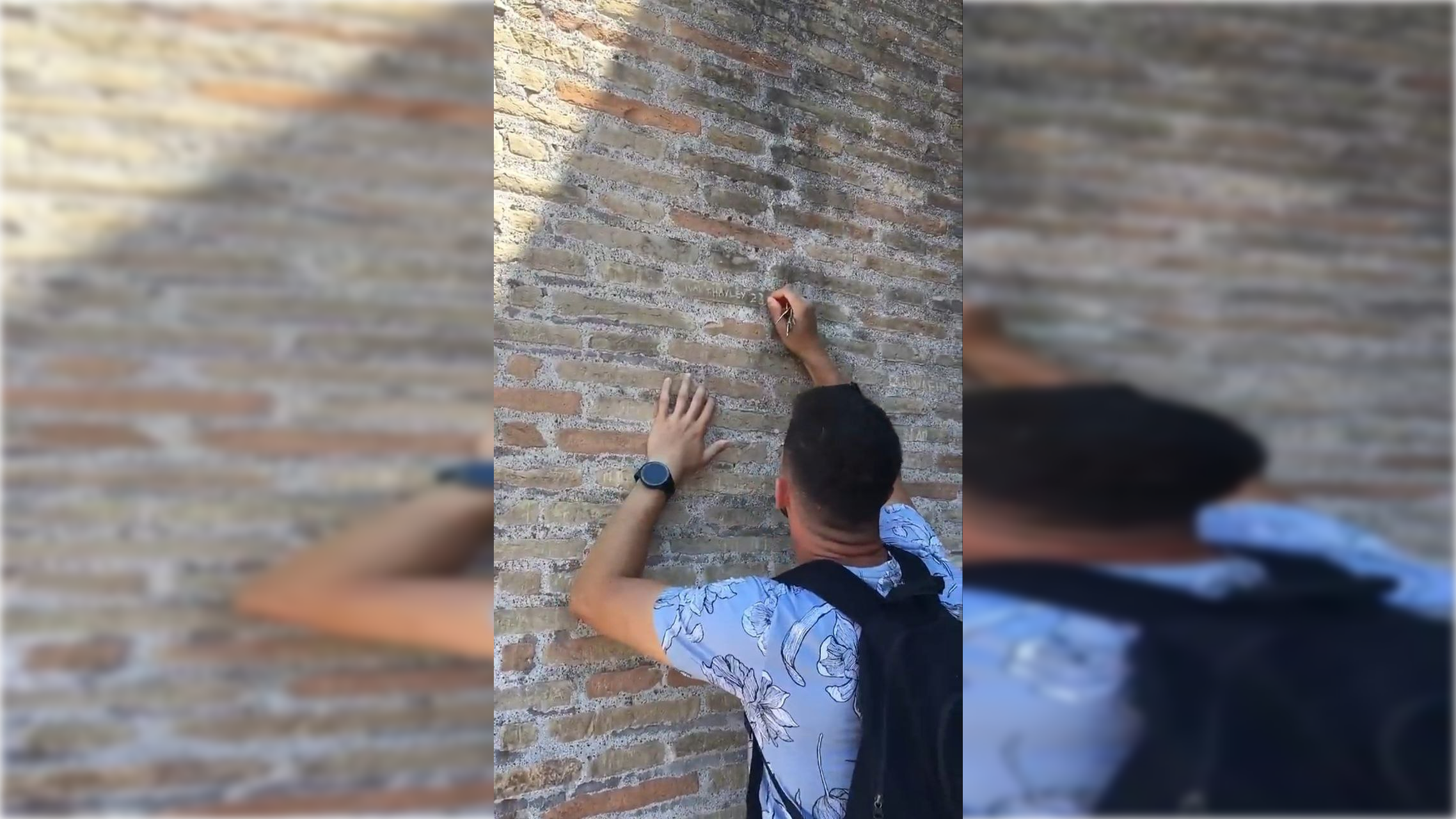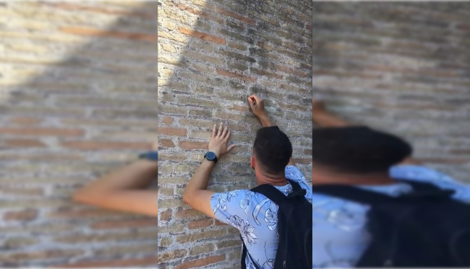 En él se observa a un joven con unas llaves grabando su nombre y el de su acompañante en los muros milenarios del Coliseo de Roma. Además, lejos de la discreción, el turista parece enorgullecerse de esta actuación al mostrar una sonrisa a la cámara.