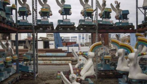 Sin balancín, la empresa vende curros por valor de 225 euros, además de otros artículos de la Expo del 92 que adquirieron en la subasta de liquidación. Entre ellos, una botella de Coca-Cola de un metro de alto por 40 euros o matrículas de la Expo por 25 euros. Los productos también están disponibles en Wallapop.