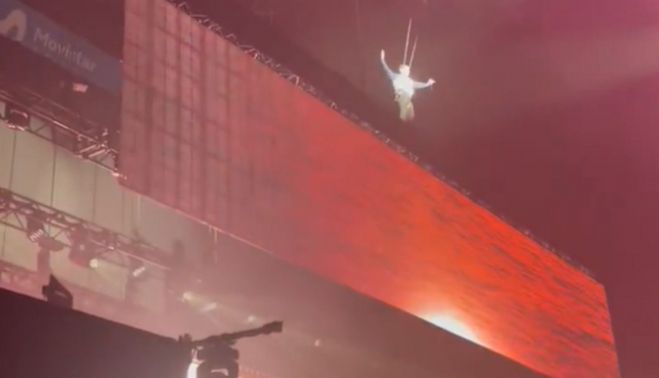 Como consecuencia del accidente, el artista se dislocó el hombro y acabó con una grave fractura, aunque eso no le impidió completar el espectáculo. El gesto fue recibido como una muestra de compromiso con sus seguidores, que vivieron una noche marcada por la emoción y el sobresalto.