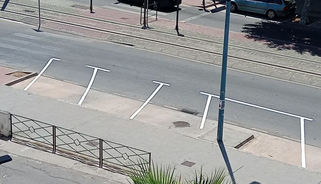 Guasa en las redes sociales por una obra realizada en una calle del barrio Ciudad Jardín de Chiclana. Han pintado unas líneas que delimitan el aparcamiento para vehículos. Hasta ahí, nada fuera de lo normal. Sin embargo, una de ellas no aparece paralela a las demás. Un despiste que ha provocado todo tipo de reacciones.
