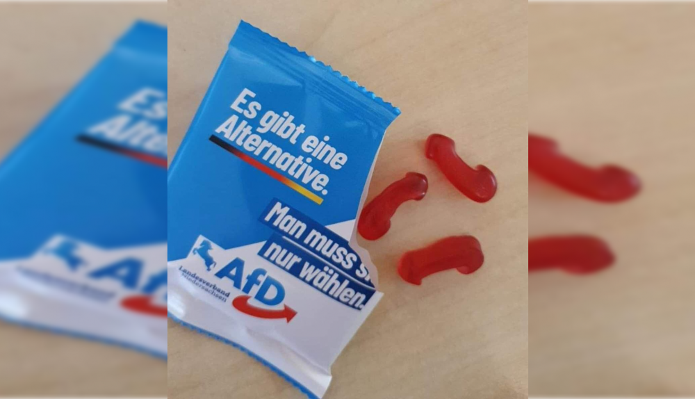Más que flechas rojas, lo que salía de la bolsa parecían ser otra cosa. Los usuarios de Twitter han comentado el similar parecido de la gominola con el miembro viril masculino. "La Baja Sajonia #AfD quiso 'endulzar' el sprint final de la campaña electoral e hizo fabricar ositos de goma. Esto fue lo que salió", tuiteaba una usuaria llamada Ann-Katrin Müller.