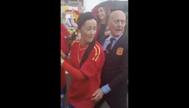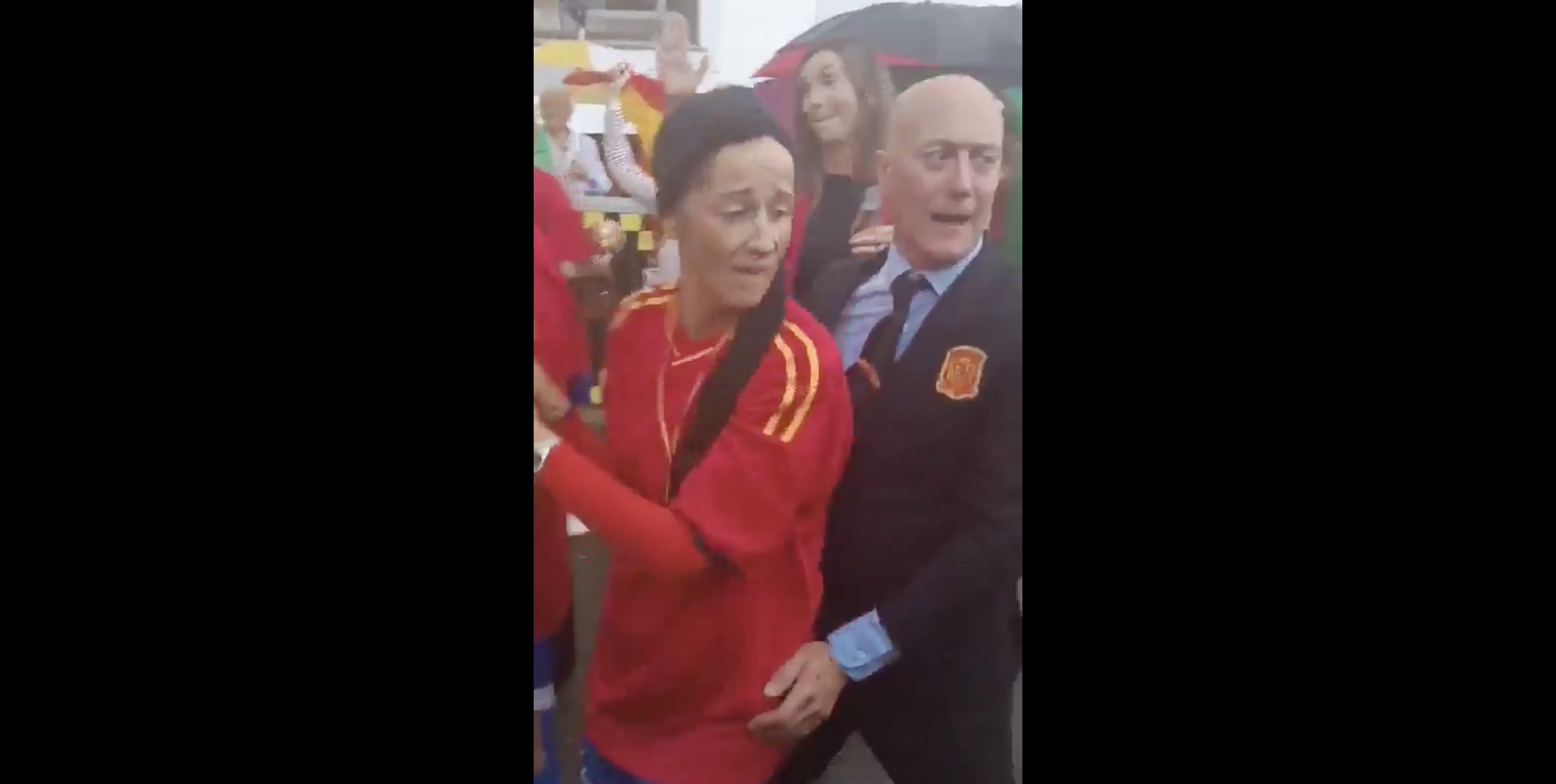Según muestran varios vídeos difundidos en redes sociales, un grupo tanto de hombres como de mujeres salieron a las calles como si fueran las jugadoras de la Selección. Uno de ellos, acudía con traje de chaqueta y un escudo de la RFEF, la ropa que solía llevar Rubiales en actos en representación de la Federación.