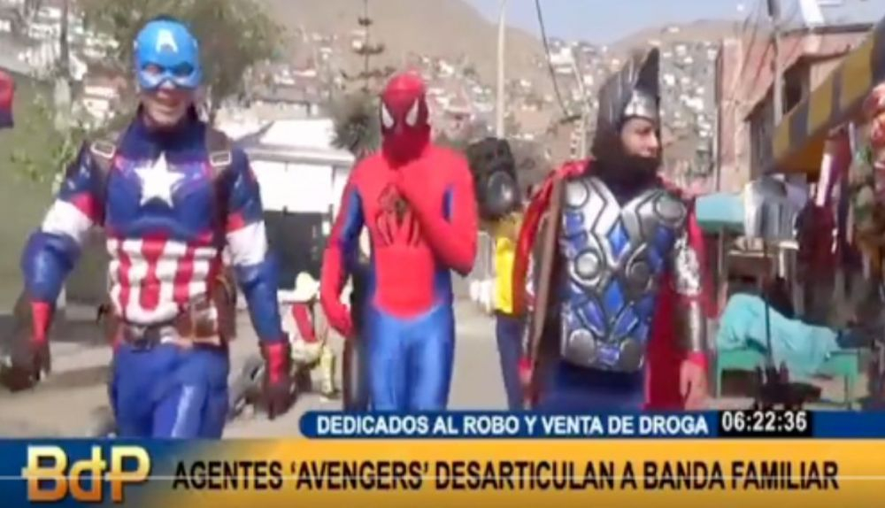 Policías peruanos disfrazados de superhéroes de Marvel capturaron a narcotraficantes. Los delincuentes pensaron que era una broma por Halloween hasta que vieron las armas reales. La banda se llamaba "Los villanos de Mariátegui".