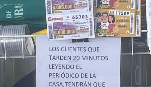 "Los clientes que tarden 20 minutos leyendo el periódico de la casa, tendrán que leerlo en voz alta para que los que están esperando se enteren”, versa el folio colocado en la barra del local, que quiere evitar que los clientes no se lleven más tiempo de la cuenta con la prensa.