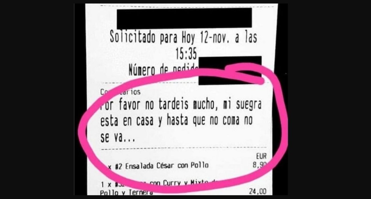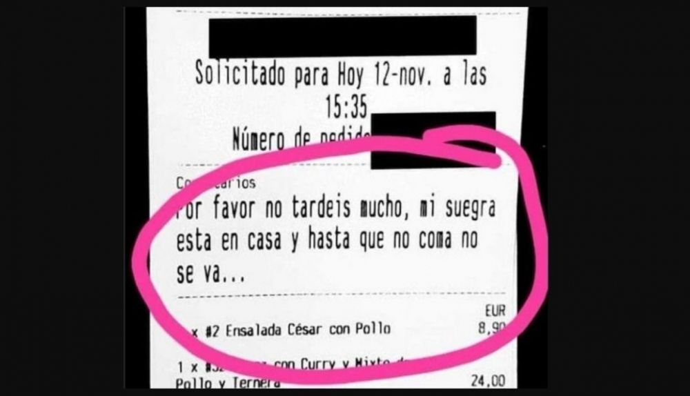 "Por favor, no tardéis mucho. Mi suegra está en casa y hasta que no coma no se va". Esta es la curiosa petición realizada por un cliente a un restaurante de Sevilla en un pedido de comida a domicilio.
